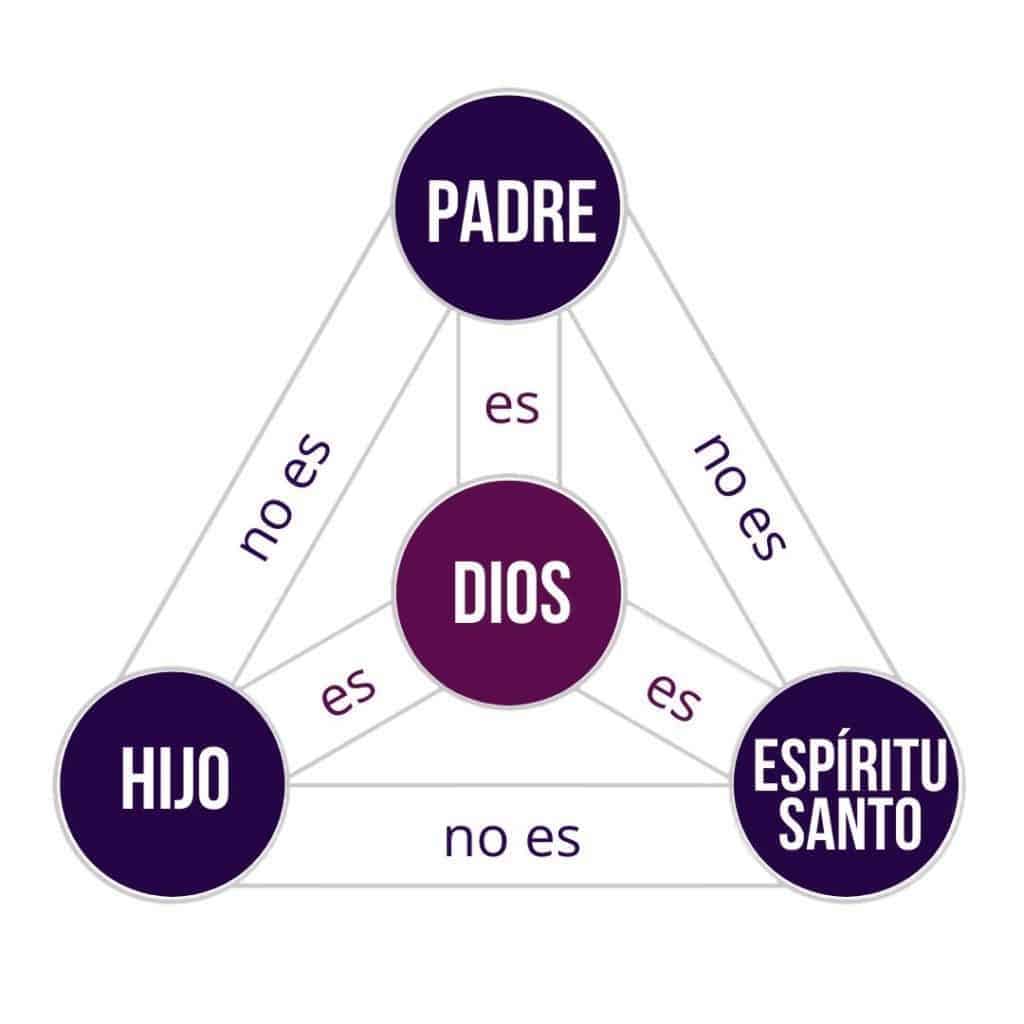 En la ilustración inicial, se puede ver claramente cómo se distribuye la trinidad. El Padre no es el Hijo – no fue el Padre quién murió por nuestros pecados – pero sí es Dios. De igual manera el Hijo y el Espíritu Santo. Cada persona de la Trinidad tienen tareas específicas, trabajando en unísono hacia un solo propósito: hacer Su voluntad.